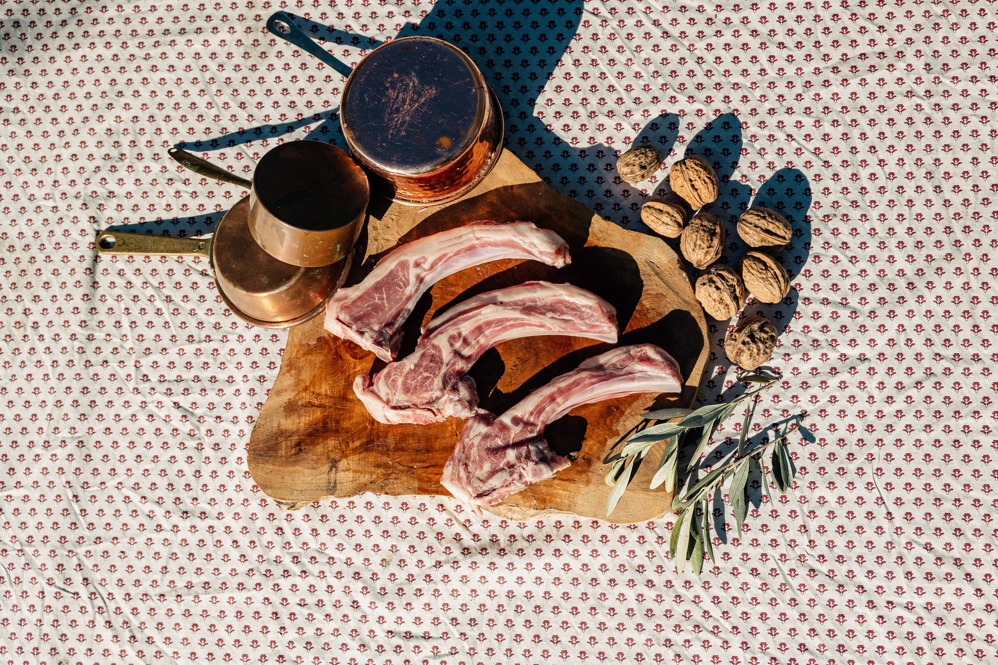 Côtelette d'agneau élevé à Marcoux et transformée artisanalement par l'Atelier Paysans sur l'exploitation.