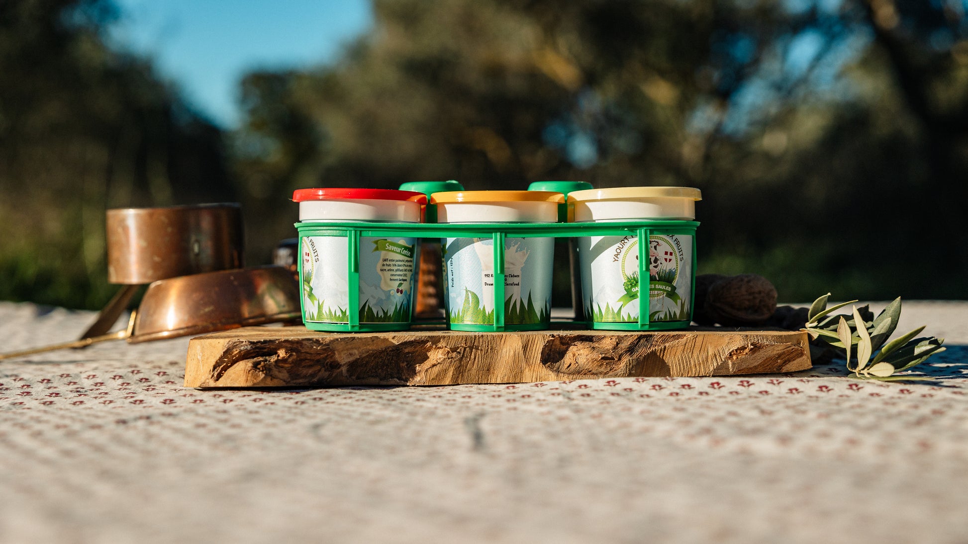 Six yaourts fermiers transformés à la ferme à partir de lait entier d'un seul troupeau sur lit de préparation aux fruits. Ce yaourt est fait de façon traditionnelle sans arômes ni conservateurs.